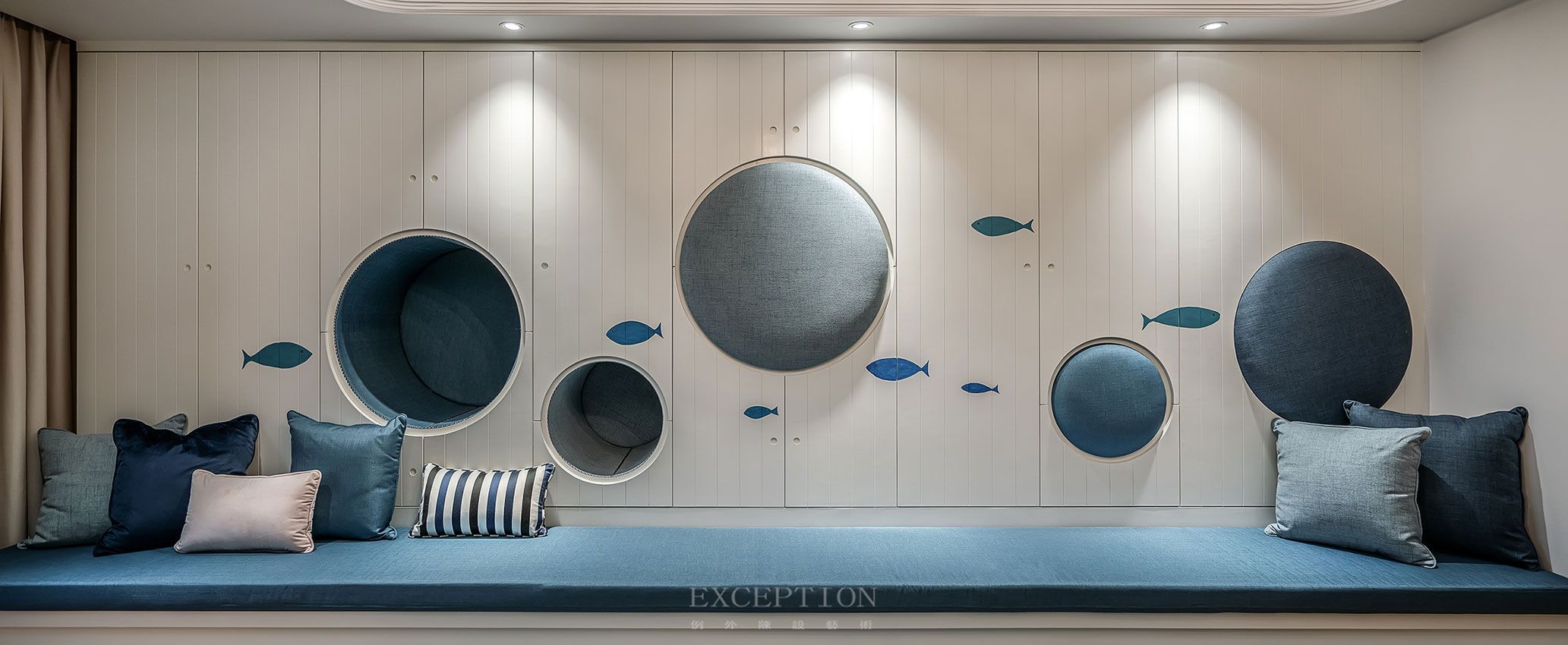 縱觀整個設計,以海洋元素貫穿全局,進而衍生出不同空間的品調來詮釋生活。在本案中,對于孩子成長空間的關注值得思考。