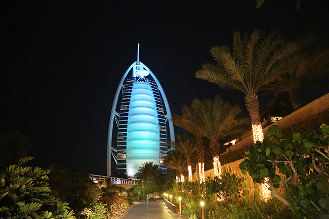 之前行程計畫是會入住帆船酒店的,但是後來因為特殊原因取消了,不過晚餐安排在帆船酒店,儘管大家都很遺憾,但是當站帆船酒店的腳下時,仰視著這個迪拜名片時,所有的遺憾立馬煙消雲散:優美的弧度,宏大的氣勢,濃烈的阿拉伯文化,極盡奢華的設計與頂級的工藝、高品質的建材結合,刻寫著迪拜的攝人心魄的魅力。