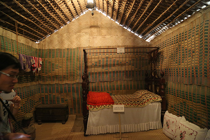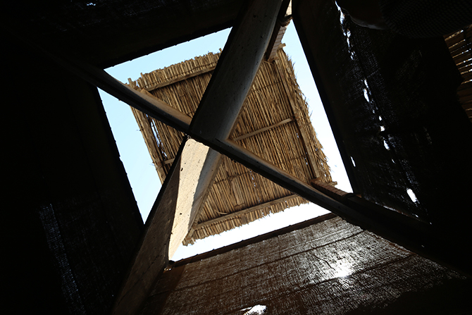 在這裡可以看到古阿拉伯人以前的住屋模式。由於地處熱帶沙漠,夏季炎熱乾燥,氣溫可高達40-48℃,所以早期的房屋都用椰棗樹枝架設,房子的牆壁則是用棕櫚葉編織而成,四面透風。 空調尚未發明的時代,沙漠上的居民通過自己的智慧創造出風塔,通過分流四方來風,使室內形成涼爽氣流。站在風塔下,習習涼風吹來,果真比空調舒服多了。