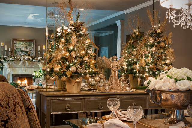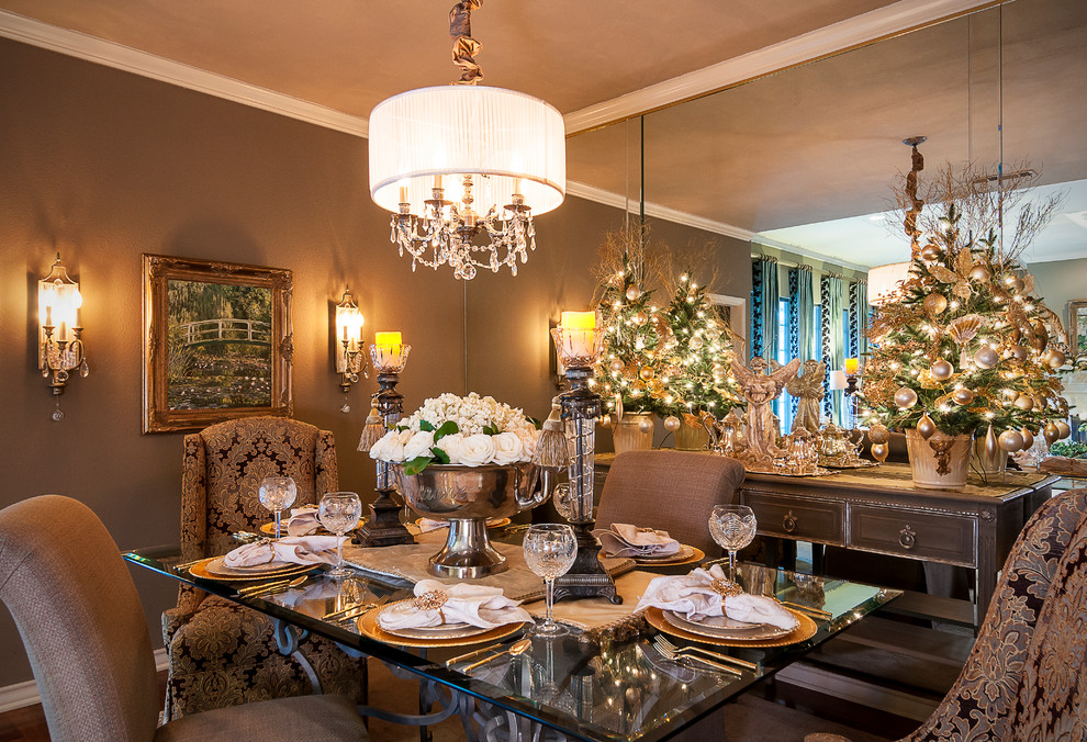 璀璨莫如金,世界上大多數國家的皇族顏色都是以金色為基調,與生俱來的華貴令它散發著光芒四射的魅力。金色,是一種輝煌的光澤色,更是大自然中至高無上的純色,它來自太陽,代表溫暖與幸福,同時黃金的價值賦予金色以滿足、、華麗、高貴、輝煌、神圣等象征意義。如果是平時,軟裝搭配大面積采用金色可能會落入俗套,但是圣誕節給你特權,以金色為主色調的圣誕布置尤其張揚且輝炫。例外設計師Jenny給我們推薦了以下幾款搭配方案。