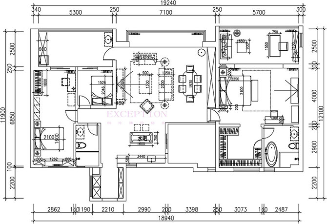 香蜜湖水榭花都室內軟裝設計平面布置圖