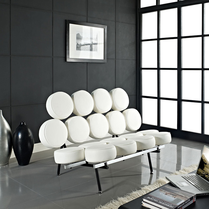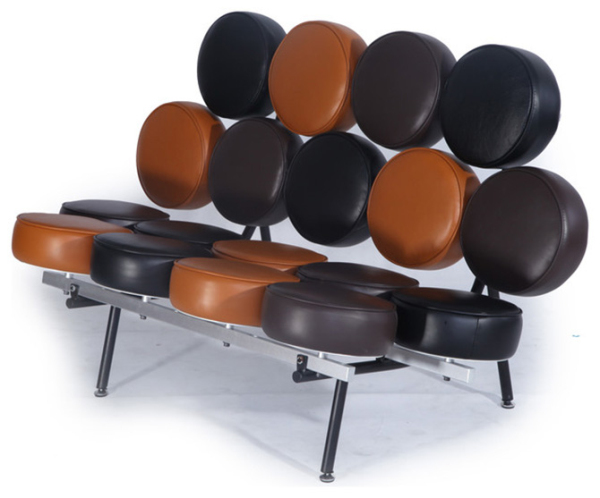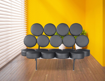 Marshmallow沙發是喬治?尼爾森有名的作品之一,譯為棉花糖沙發,我們也叫它鼓椅,因為它的樣子看起來就像一個個Tom-Tom鼓的排列組合。1956年,喬治?尼爾森和一個名叫艾文?哈勃(Irving Harper)的年輕設計師,被一個發明出注塑光盤的發明家所啟發,認為將這種形態用于沙發設計可以減少生產成本而且更耐用。當時他們將18個這樣的注塑光盤安放在一個鐵架上,Marshmallow的原型就此誕生。后來Herman Miller家具公司在1999年將它加以改進,產品一經推出便抓住世人的目光,迎合了市場要求摩登時髦又兼顧功能性的造型要求。